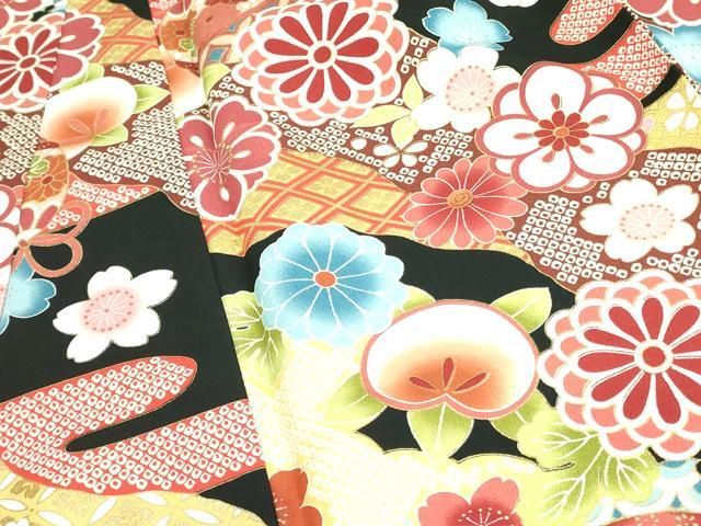 平和屋着物 小振袖 二尺袖 道長花鞠文 橘 黒地 金彩 DAAX1965opの検索結果