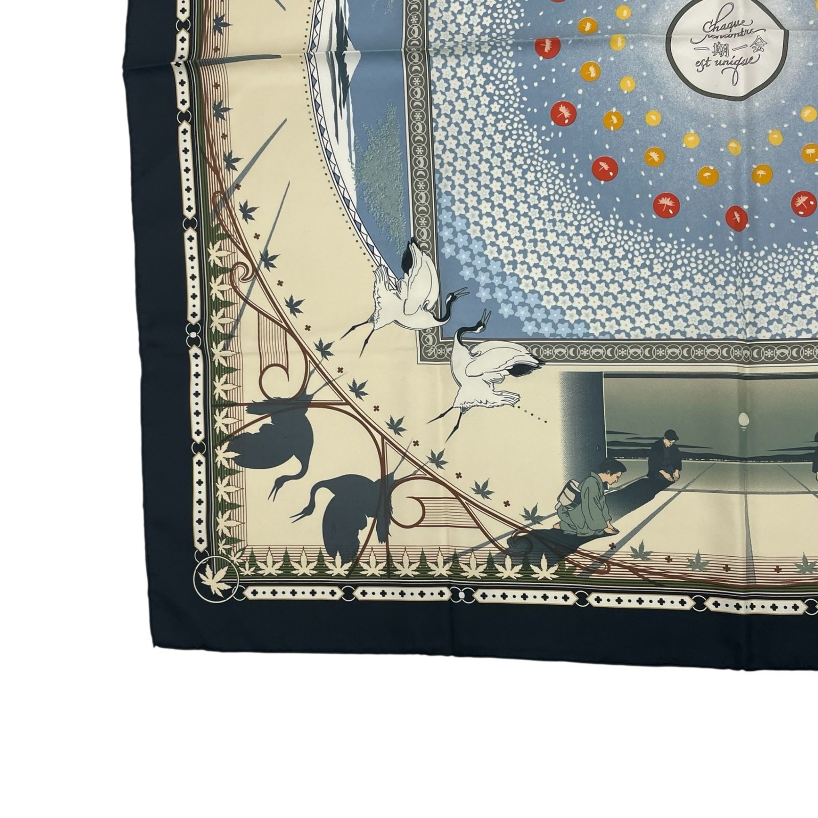HERMES エルメス カレ90 CHAQUE RENCONTRE EST UNIQUE 一期一会 スカーフ 花鳥風月 鶴 き GLOBALQUALITYIMPORTS_COM