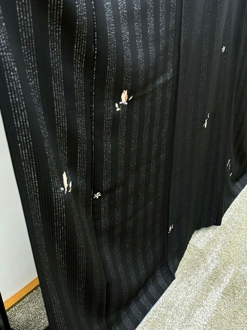 小紋 梟 刺繍 銀通し 飛び柄 正絹 黒地 ガード加工済 GLOBALQUALITYIMPORTS_COM