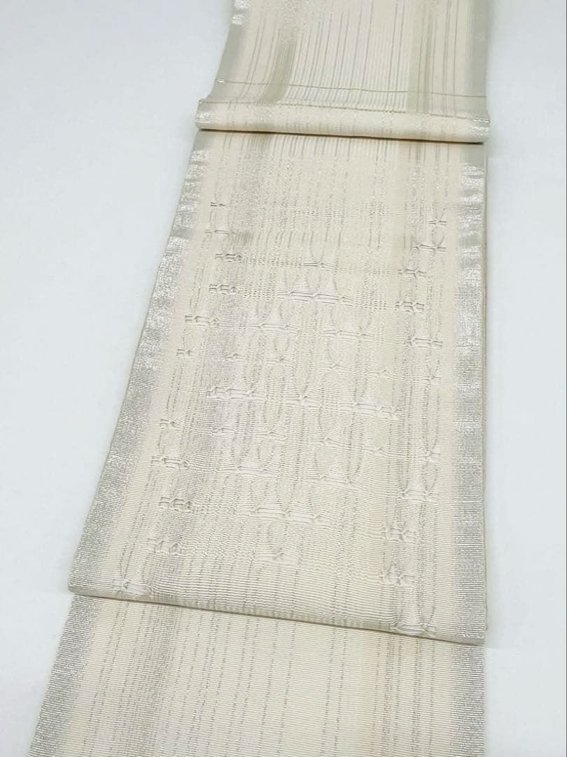 組織 袋帯 銀糸 ラメ 正絹 お太鼓柄 Q1135の検索結果