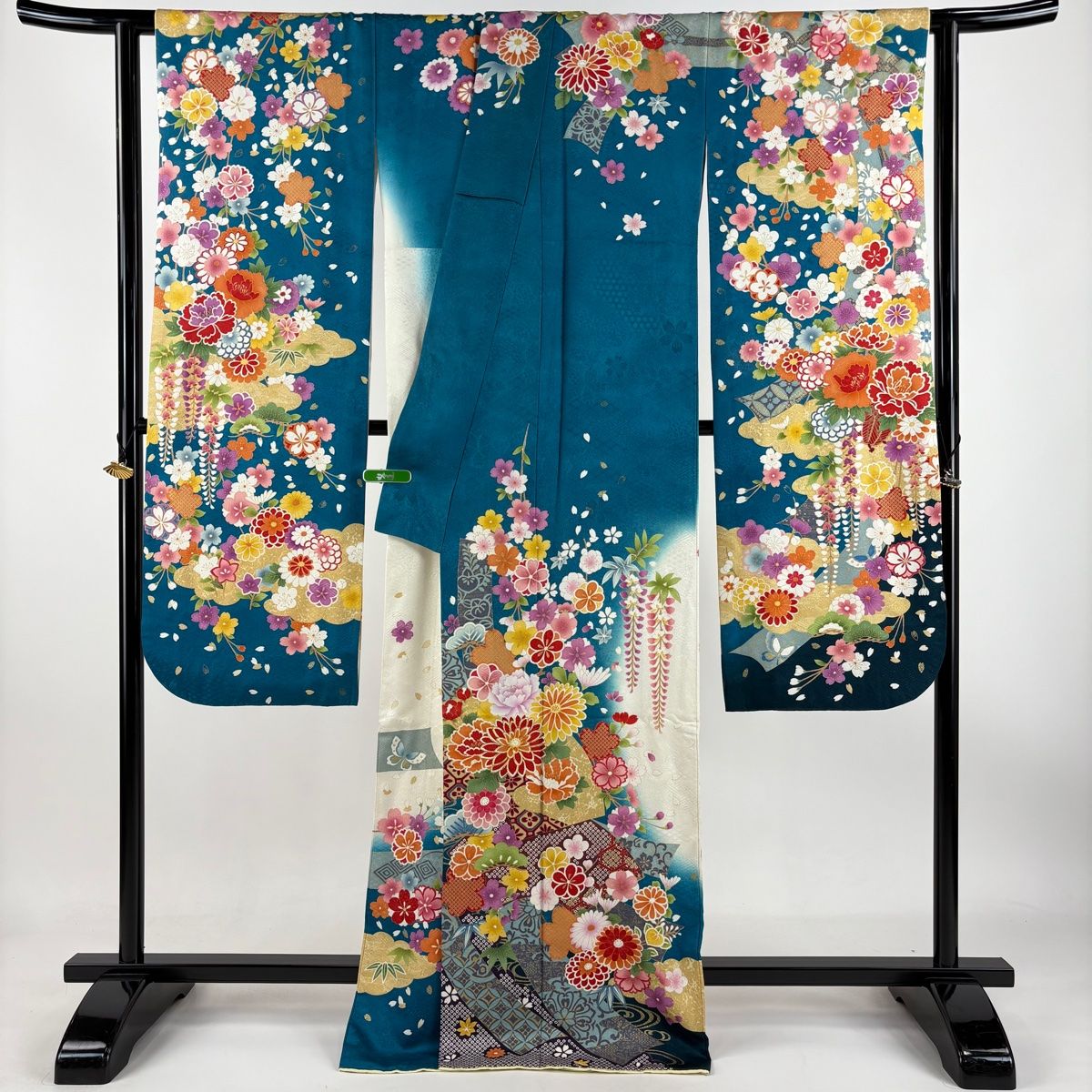 振袖 身丈169.5cm 裄丈68cm L 袷 菊 扇面 金糸 銀通し 青緑 正絹の検索結果