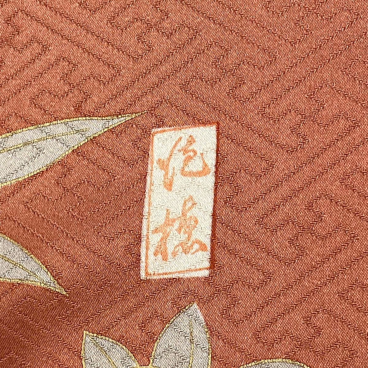 訪問着 身丈163.5cm 裄丈68cm L 袷 鈴乃屋 落款 扇 草花 金糸 金彩 サーモンピンク 正絹 秀品の検索結果