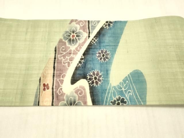 平和屋着物 夏物 九寸名古屋帯 流水草花文 麻 DAAX0030cm GLOBALQUALITYIMPORTS_COM