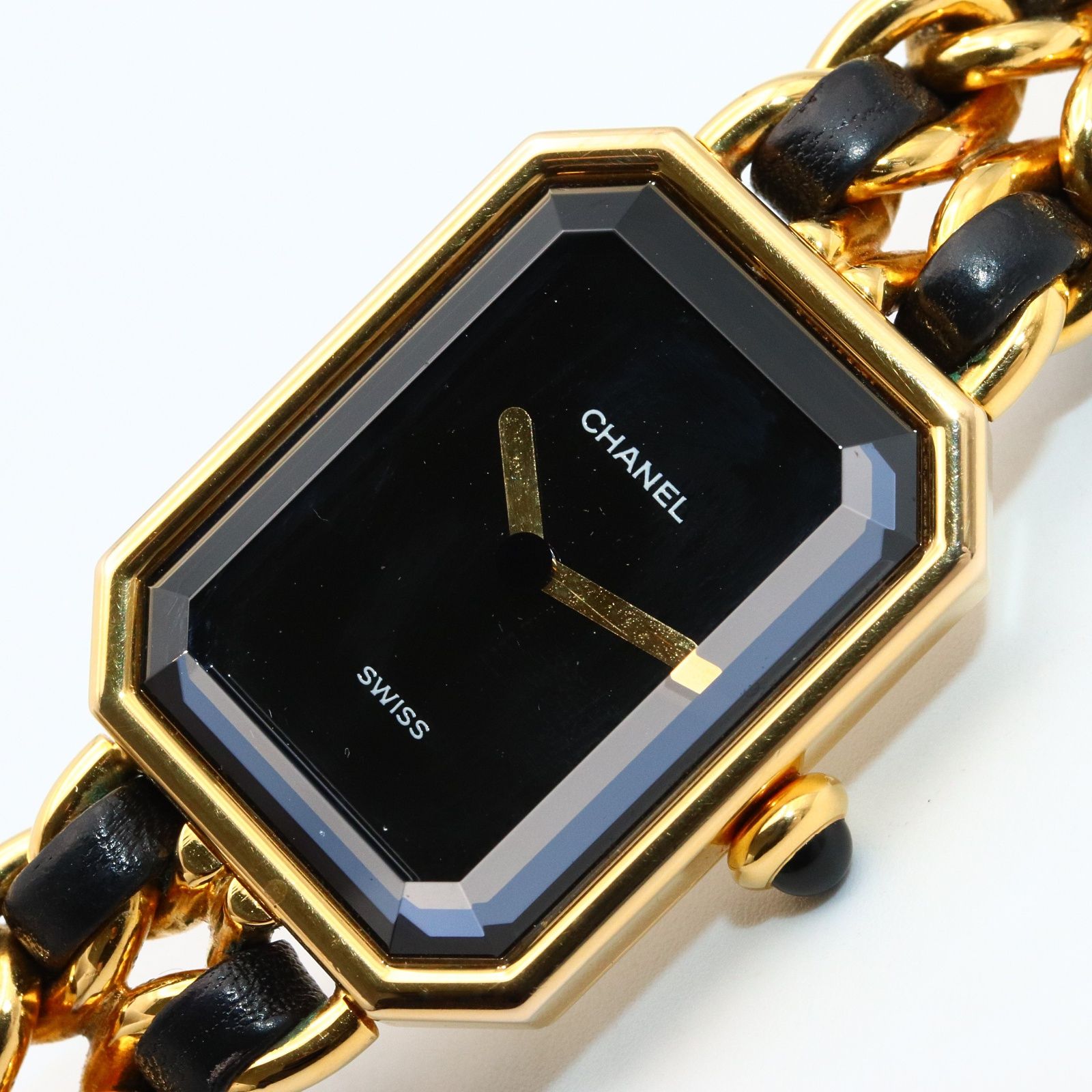 シャネル CHANEL 腕時計 プルミエールM H0001 ブラック GP ゴールドメッキ レザー プルミエールM レディース Used A GLOBALQUALITYIMPORTS_COM