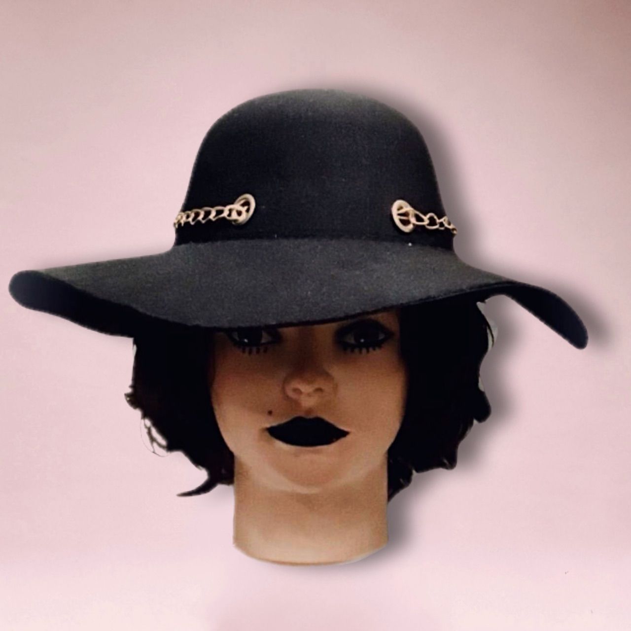 現品限り ループチェーン付き つば広キャペリンフェルトハット 女優帽 レトロ クラシカル レディース帽子 60s 70s 大人 GLOBALQUALITYIMPORTS_COM