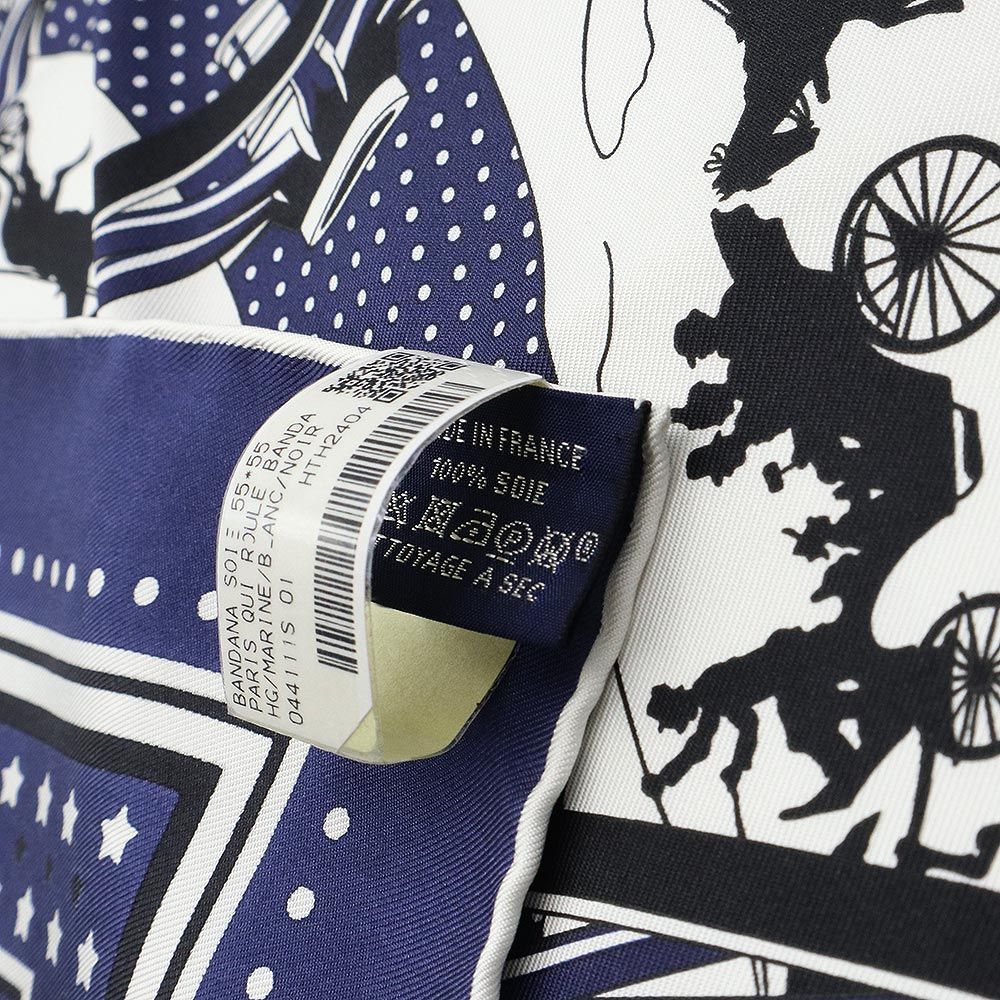 エルメス カレ 55 Paris Qui Roule Bandana 車輪でめぐるパリ バンダナ スカーフ シルク100% マリン マリーヌ ブラン ノワール ネイビー HERMES GLOBALQUALITYIMPORTS_COM