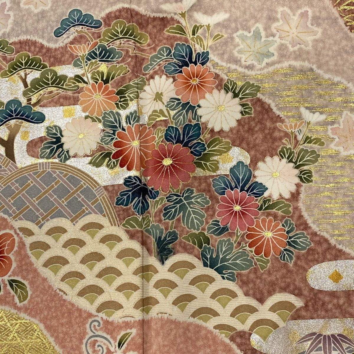 訪問着 身丈156.5cm 裄丈65cm M 袷 草花 道長取り 金銀彩 銀通し 茜色 正絹の検索結果