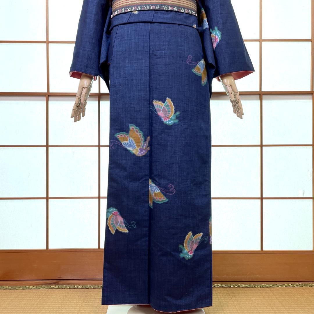 紬 着物 袷 正絹 ストライプ 蝶々 濃い藍色 kimonolove リユース品 オゾン消臭サービス A-1023の検索結果