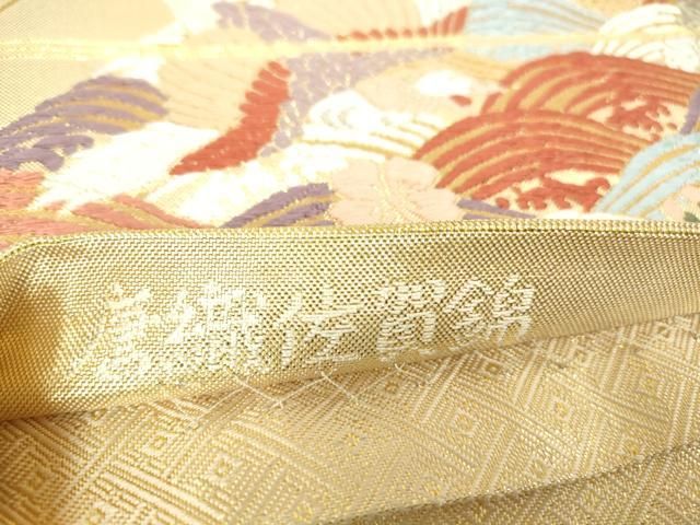 平和屋着物 佐賀錦 六通柄袋帯 唐織 瑞鳥桜花流波文 金糸 正絹 DAAX3719az GLOBALQUALITYIMPORTS_COM