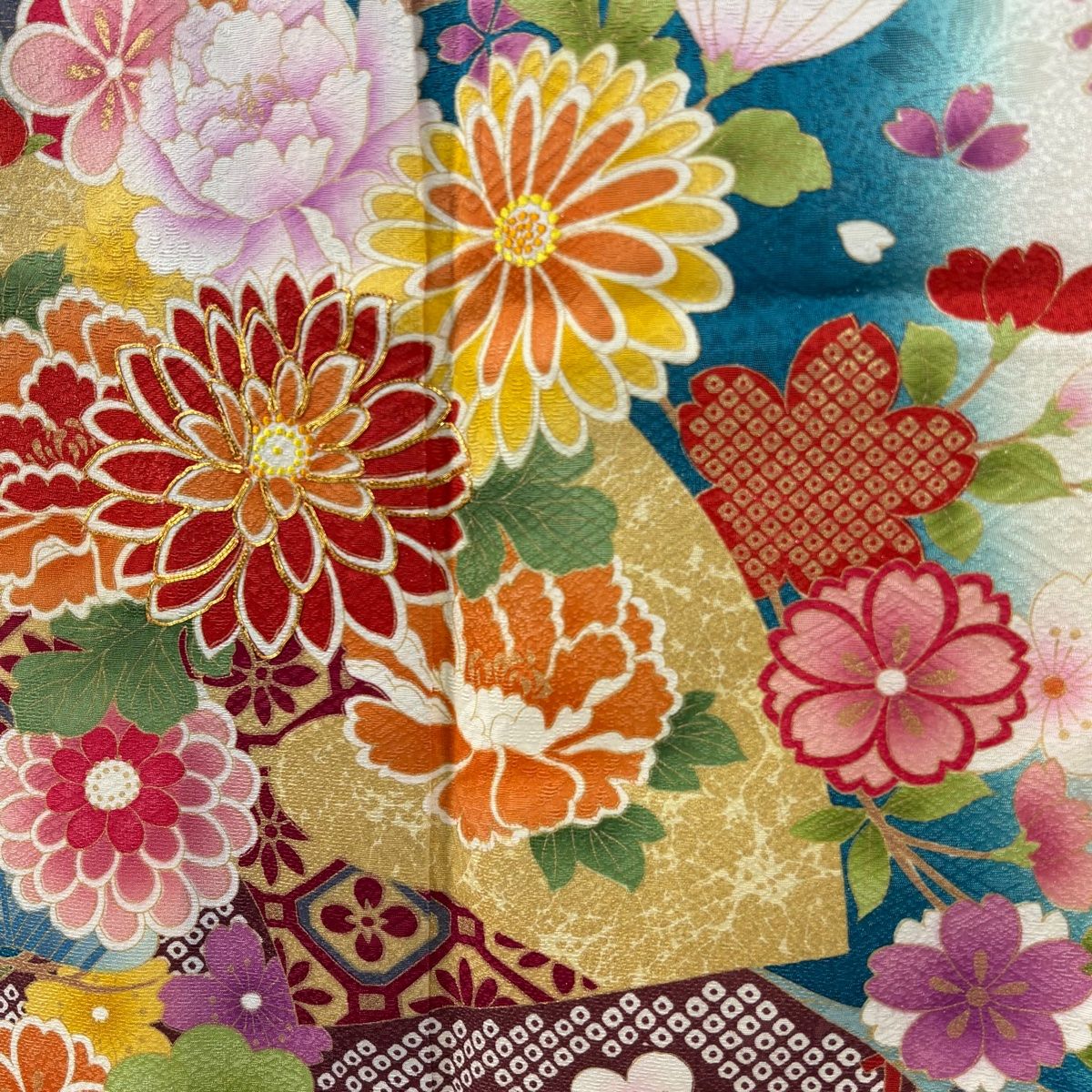 振袖 身丈169.5cm 裄丈68cm L 袷 菊 扇面 金糸 銀通し 青緑 正絹の検索結果