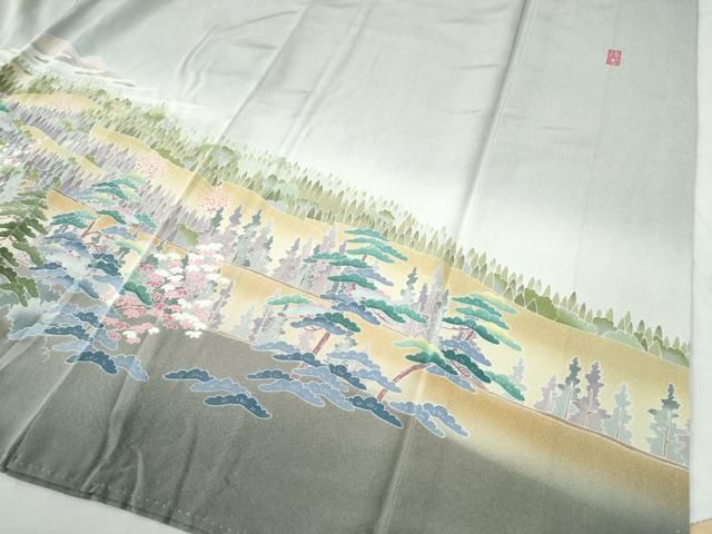 平和屋着物 十日町友禅作家 阿部佳雪 色留袖 遠山霞樹林文 暈し染め 正絹 CAAW8293ycの検索結果