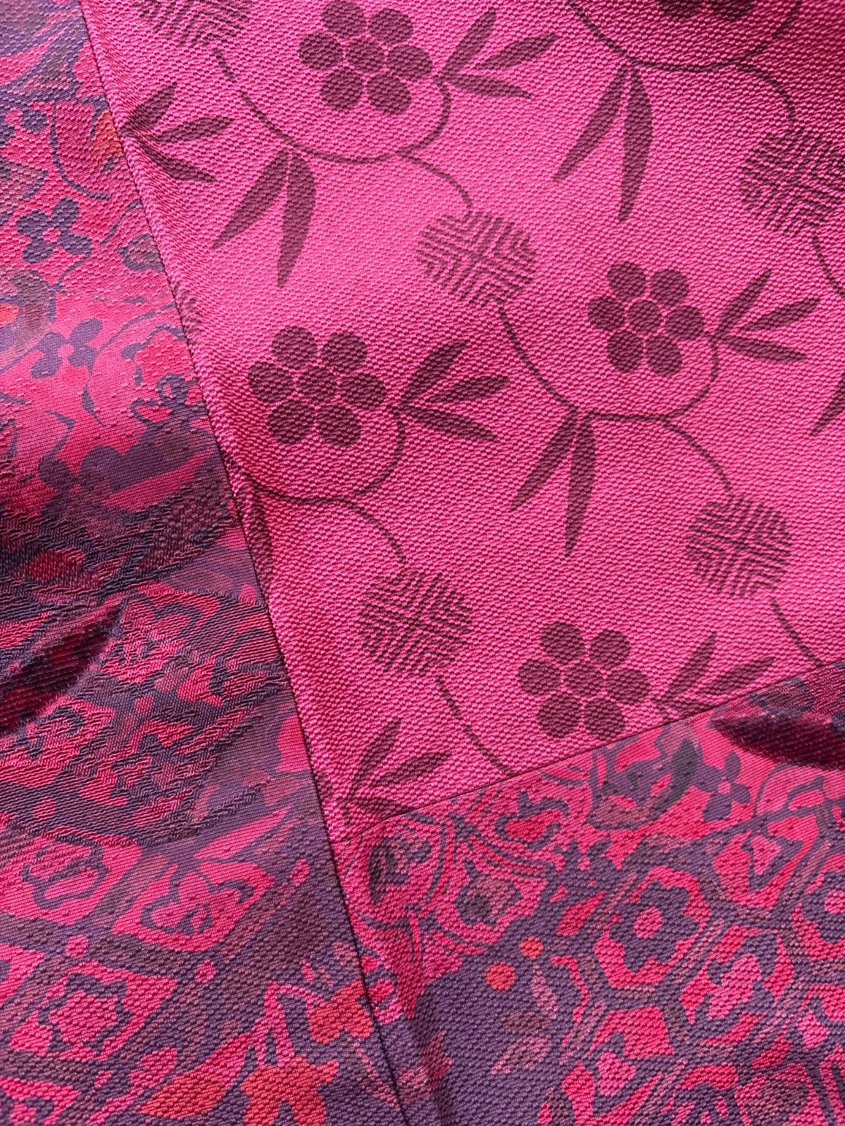道中着 唐花 更紗模様 Sサイズ ちりめん 正絹 着物コート 塵除けコート 道中着 コート 総柄 レトロ 着物コート 道行コート 道行き 防寒コート 着物 着物コート 和装コート 羽織もの レディース 羽織りもの 古着 冬 塵除け コート