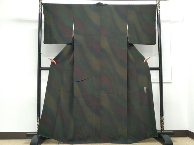 平和屋着物 上質な小紋 単衣 縞 鬼しぼ縮緬 正絹 AABC6190jh