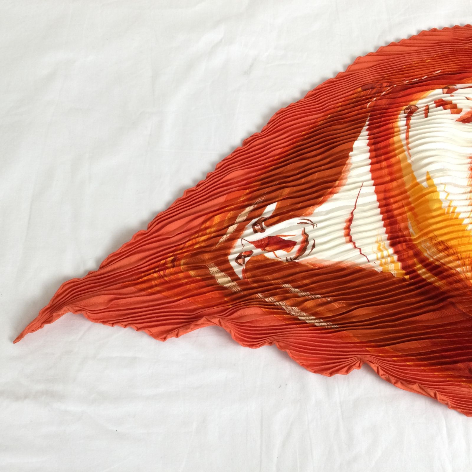 1309 HERMES エルメス Smiles in Third millenary 三千年紀の微笑 プリーツ スカーフ シルク マルチ オレンジ プリーツスカーフ ストール レディース GLOBALQUALITYIMPORTS_COM