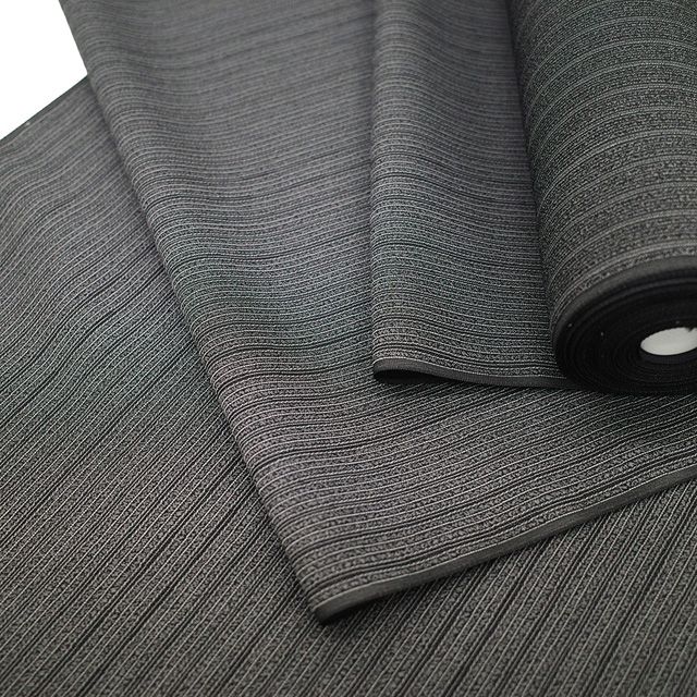 こちらの 反物 は、シックな グレーでスタイリッシュな縞が織り上げられています。