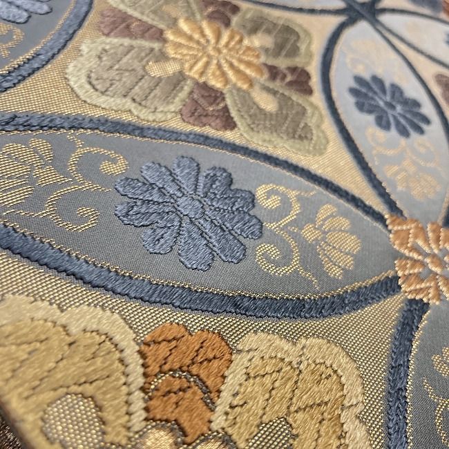 袋帯 菱七宝 金 卒入式 灰青 花 r862の検索結果