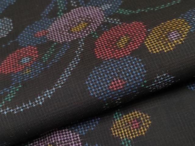 大島紬 身丈160cm 裄丈64cm M 袷 純泥染 証紙 色紙 桜 墨色 正絹