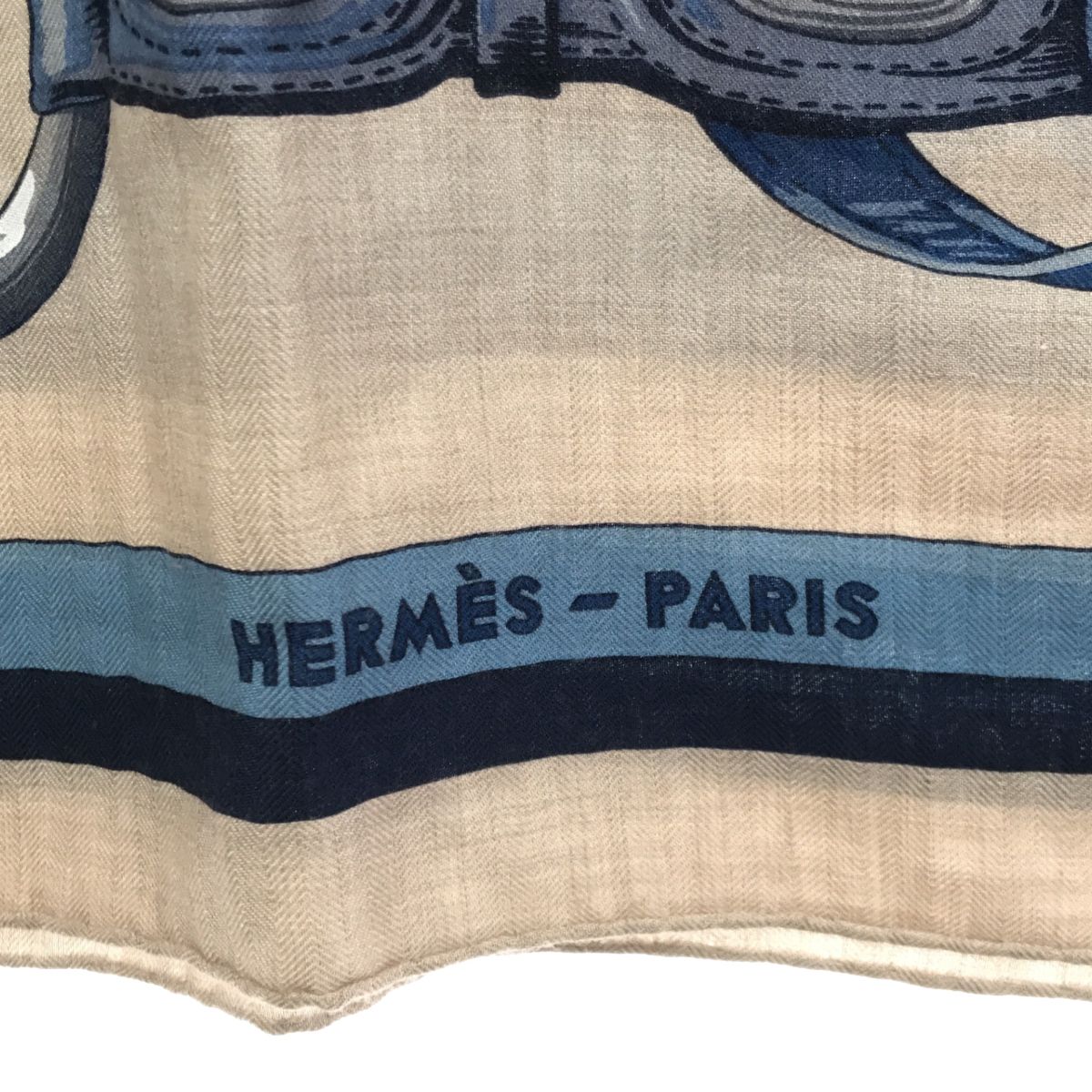エルメス HERMES カレジュアン カレ140 カシミヤ シルク COACHING コーチング 大判 ブルー スカーフ ストール M1576 GLOBALQUALITYIMPORTS_COM