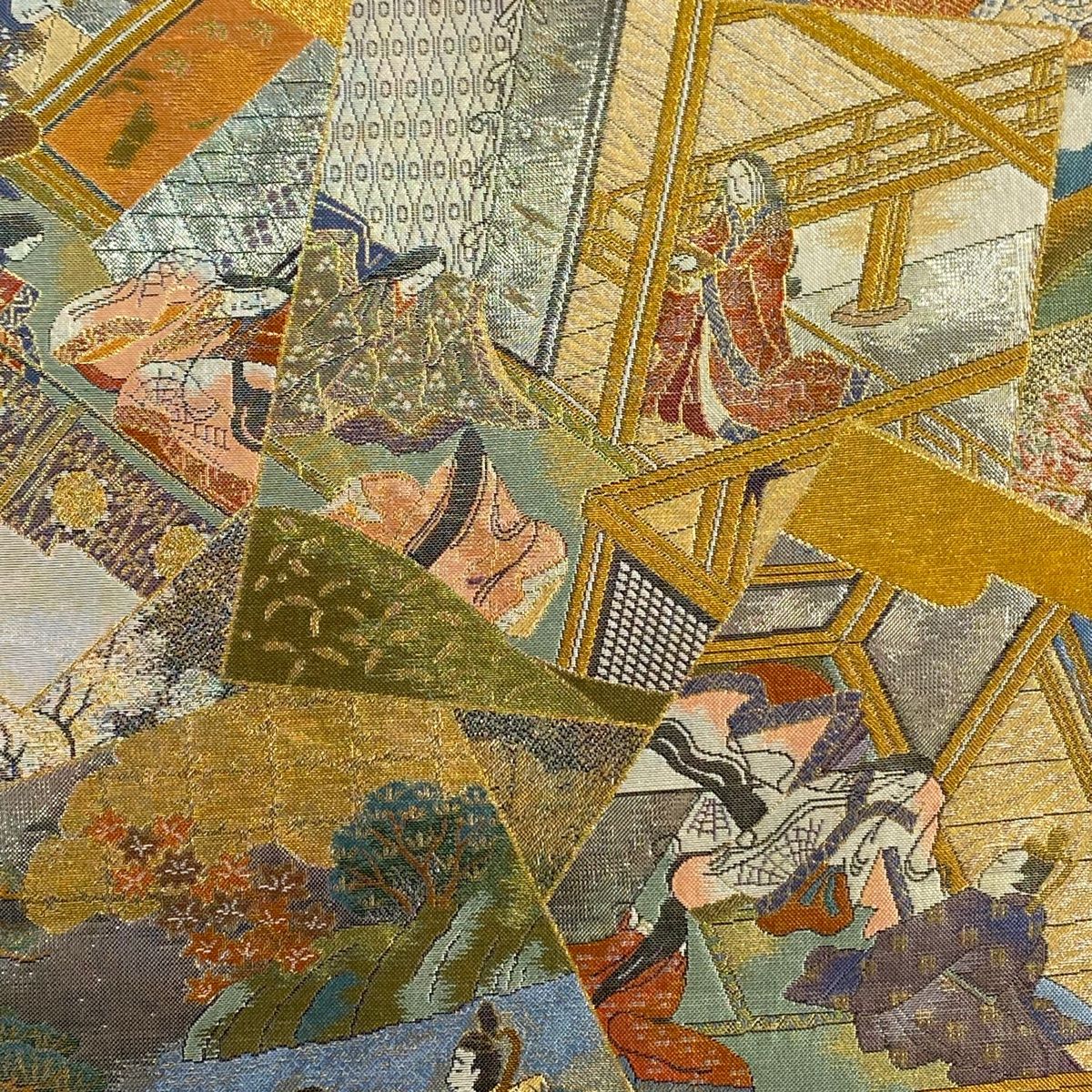 丸帯 色紙 人物 金糸 箔 金色 お太鼓柄 正絹 GLOBALQUALITYIMPORTS_COM