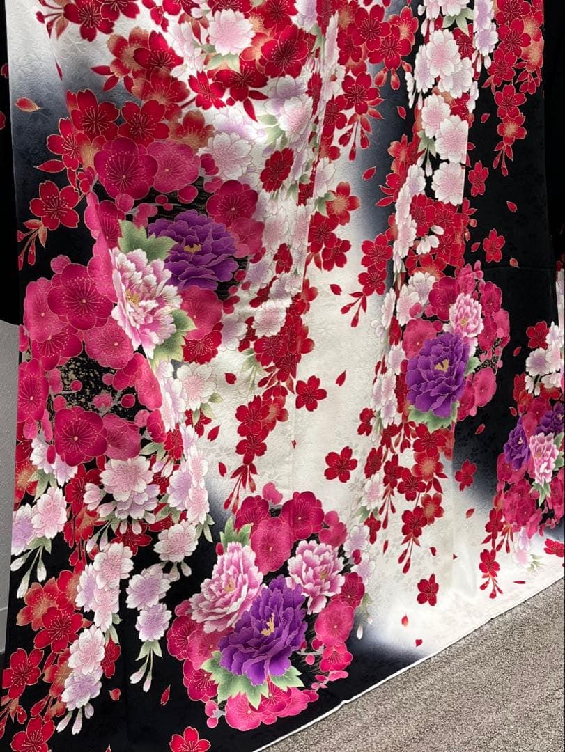 振袖 ラメ刺繍 金彩 紋意匠 牡丹 桜 梅 正絹 黒×白 S181の検索結果