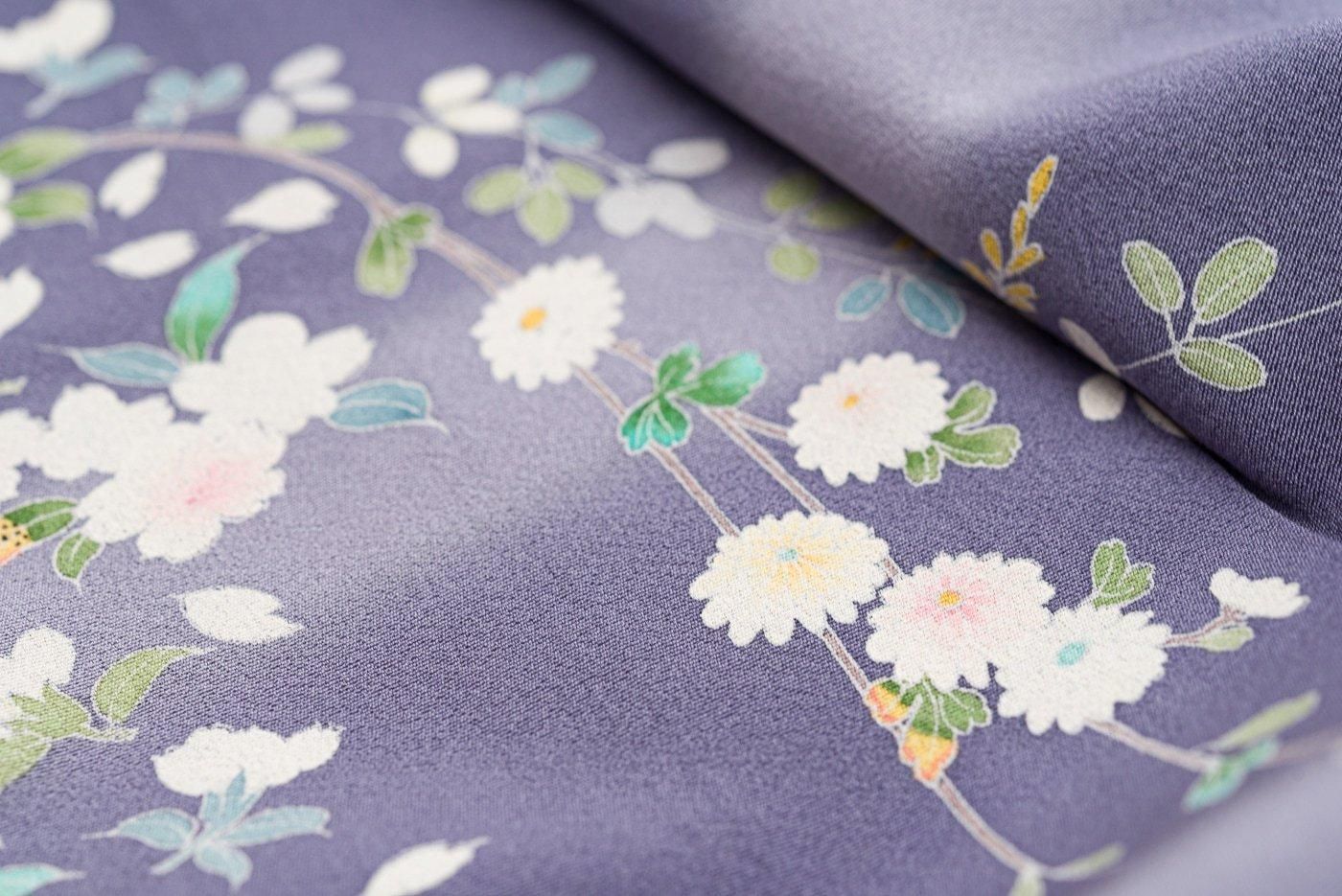 菊と桜の花の中に二人の童子を描いた訪問着です。