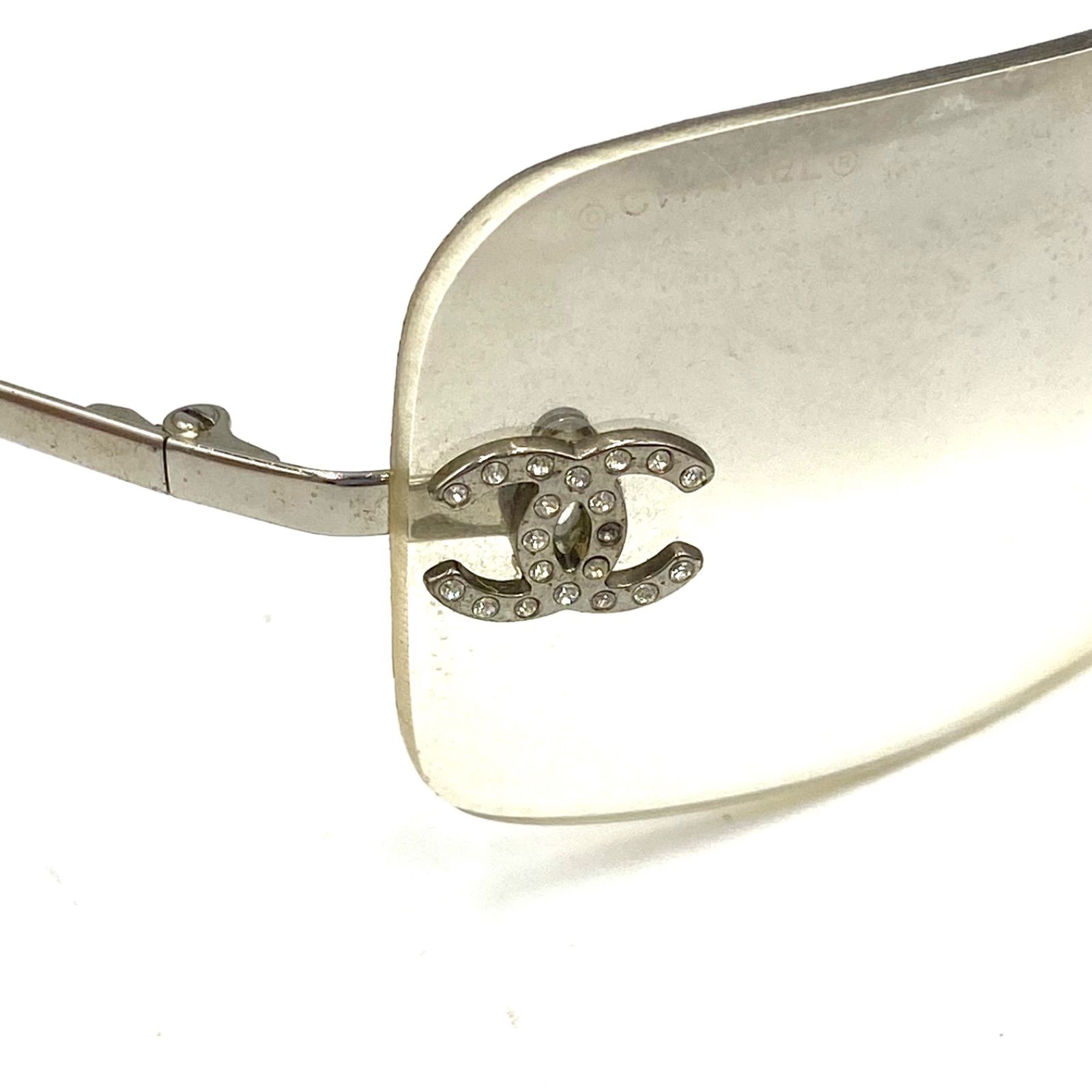 CHANEL シャネル ココマーク ライトストーン サングラス アイウェア リムレス シルバー ヴィンテージ 62 17 GLOBALQUALITYIMPORTS_COM