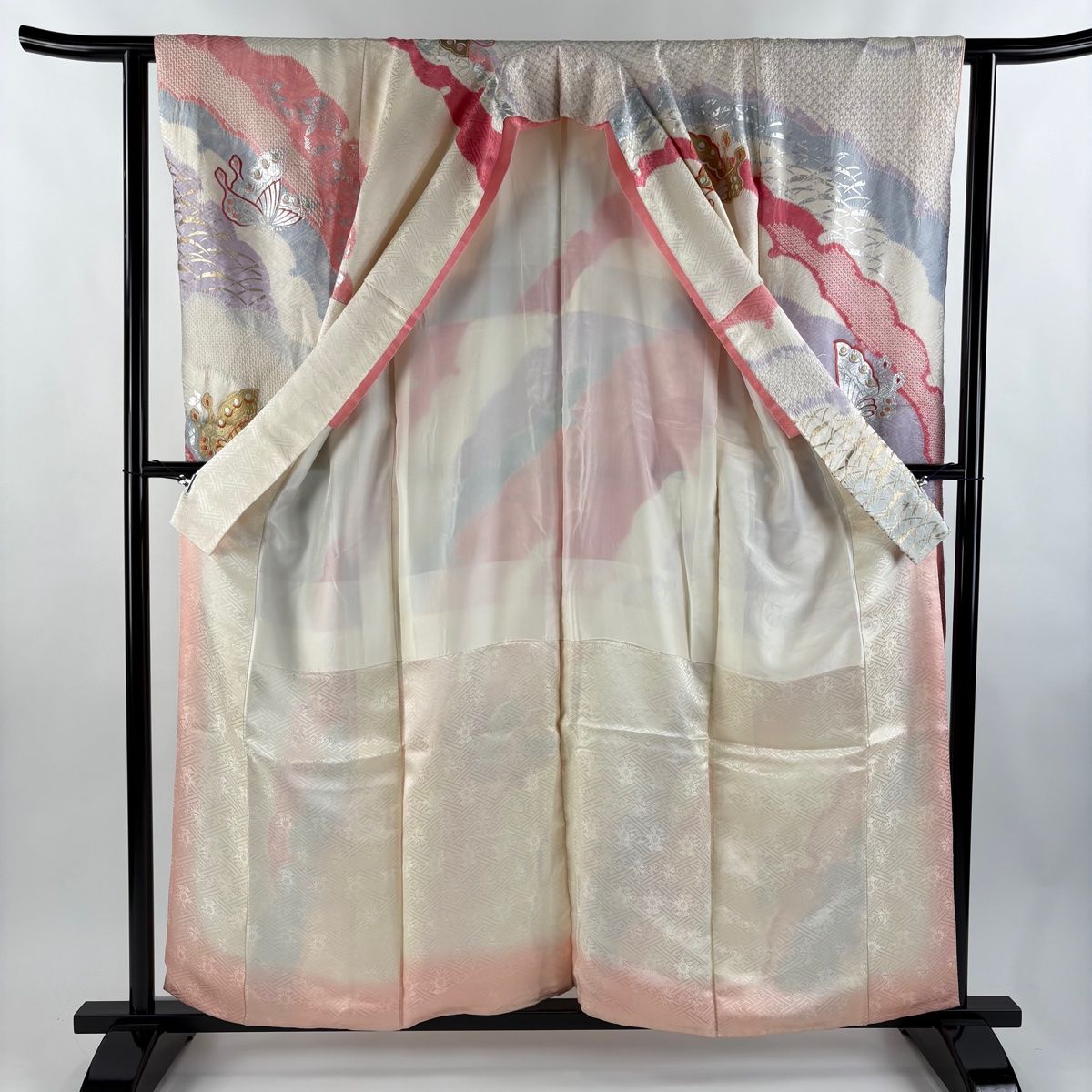 振袖 身丈157cm 裄丈61.5cm S 袷 蝶 雪芝 刺繍 金銀彩 薄ピンク 正絹 秀品の検索結果