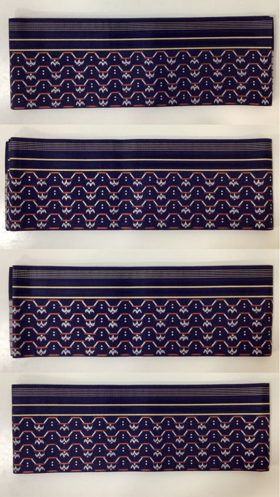 本場筑前 博多織 小袋帯 半幅帯 両面 絹100% 正絹 証紙付き 井上絹織 紺地 う251006-2の検索結果