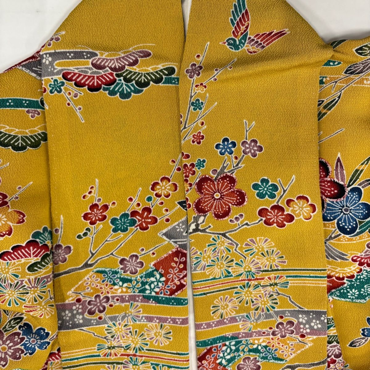 小紋 身丈154cm 裄丈62.5cm S 袷 松梅 鶴 縮緬 山吹色 正絹 秀品の検索結果