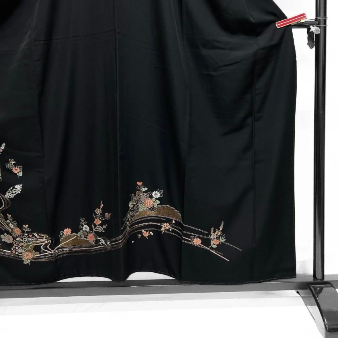 平和屋着物 豪華黒留袖 駒刺繍 片輪車花文 金彩 三越扱い 正絹 CAAX3084th