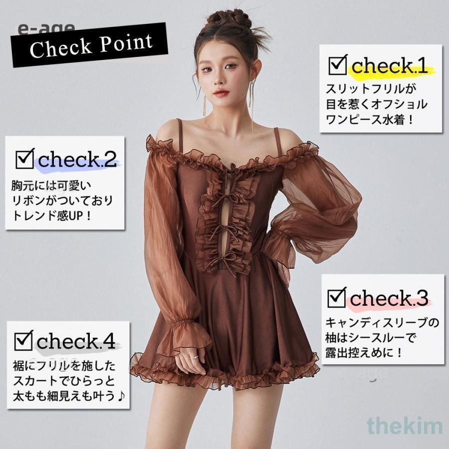 夏 水着 レディース ワンピース オールインワン 体型カバー オフショル フリル 紐 リボン おしゃれ かわいい 白 長袖 キャンディスリーブ GLOBALQUALITYIMPORTS_COM