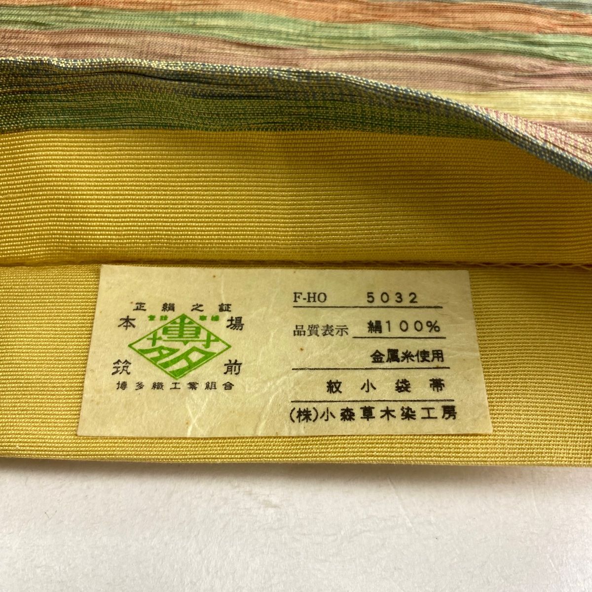 半幅帯 博多織 証紙有 縞 オレンジ 正絹 GLOBALQUALITYIMPORTS_COM