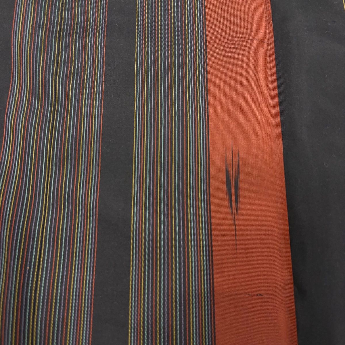 道中着 身丈131.5cm 裄丈67cm M 和装コート 着物衿 リバースブル 大島紬地 落款 証紙 縞 赤茶 正絹 GLOBALQUALITYIMPORTS_COM