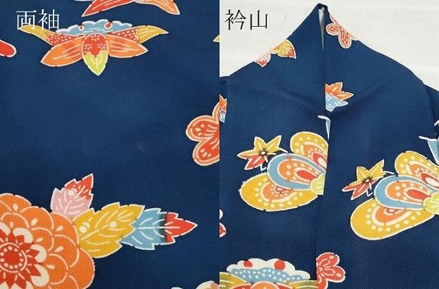 平和屋着物 小振袖 二尺袖 舞桜 黒地 洗える着物 AABC6822ph