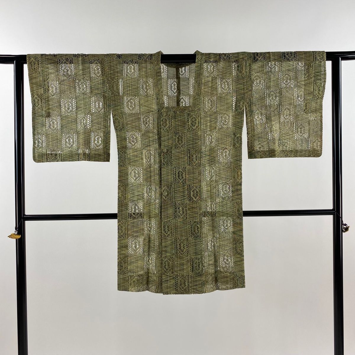 道行 身丈97.5cm 裄丈61.5cm S 和装コート 角衿 幾何学 茶緑色 正絹 秀品の検索結果