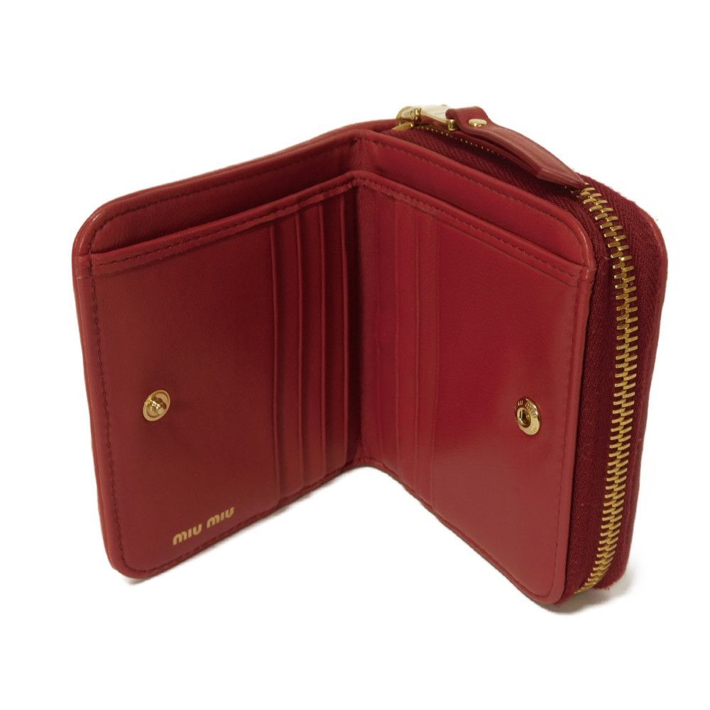 MIUMIU ミュウミュウ マテラッセ コンパクト ジップ ウォレット ギャザー ナッパ レッド ラウンドファスナー 札入れ カードケース コインケース ロゴ メタル フォーコ 二つ折り財布 5ML522 2BPU F068Z GLOBALQUALITYIMPORTS_COM