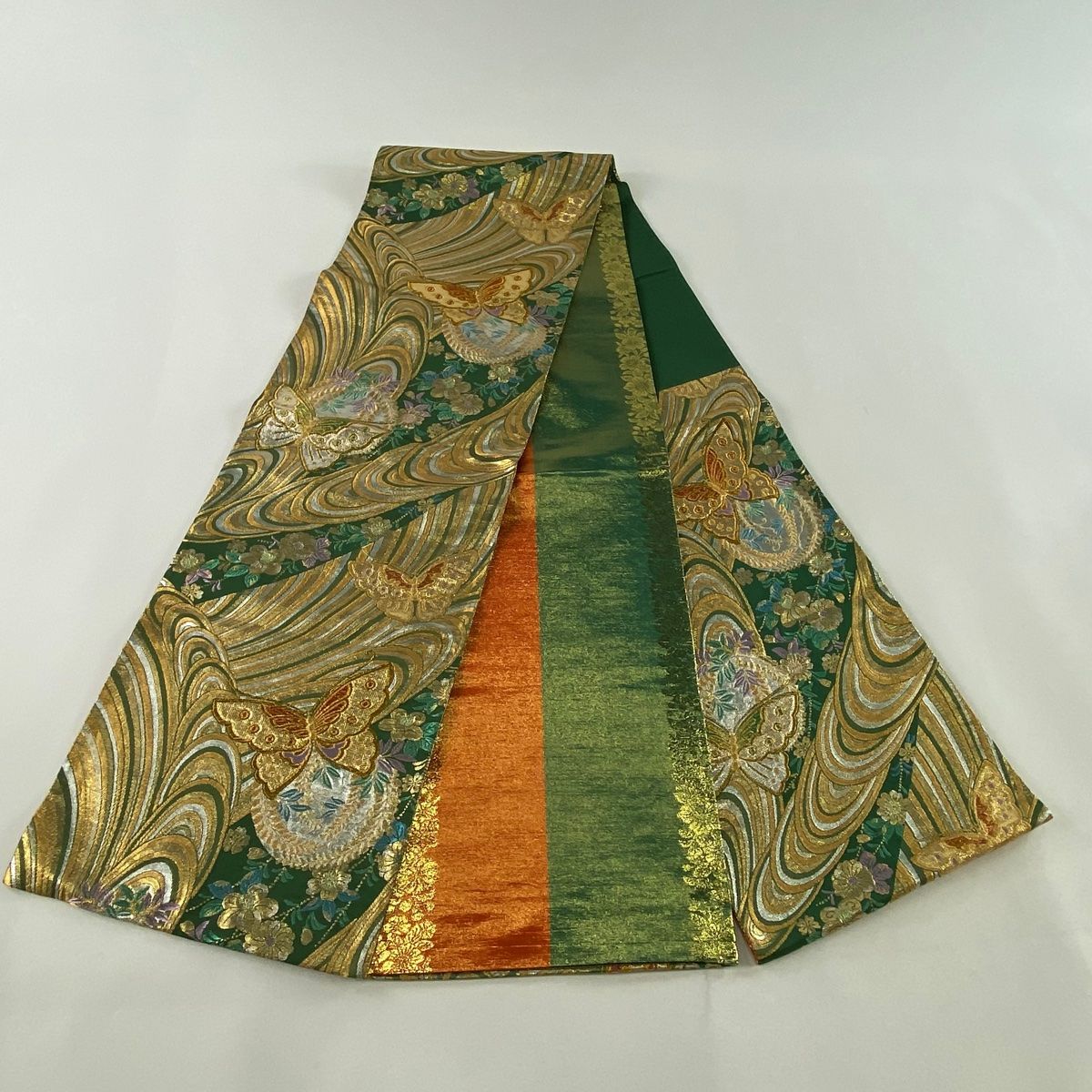 袋帯 秀品 蝶 草花 金糸 箔 緑 六通 正絹 GLOBALQUALITYIMPORTS_COM