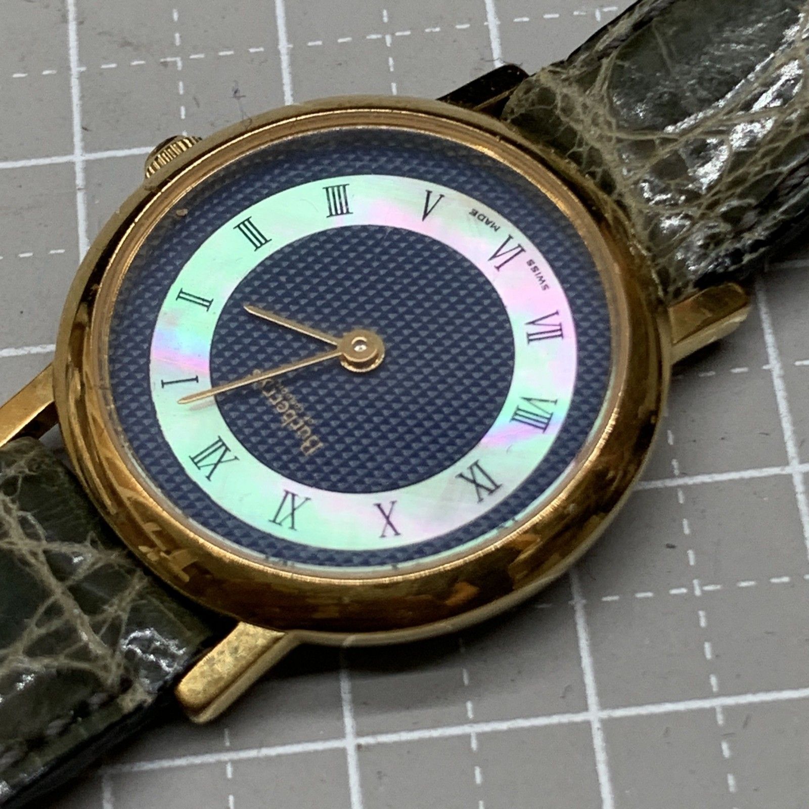 N328不動 Burberrys バーバリー ヴィンテージ 2針 腕時計 シェル文字盤 レディースウォッチ ベルト社外 ネイビー紺×ゴールド GLOBALQUALITYIMPORTS_COM