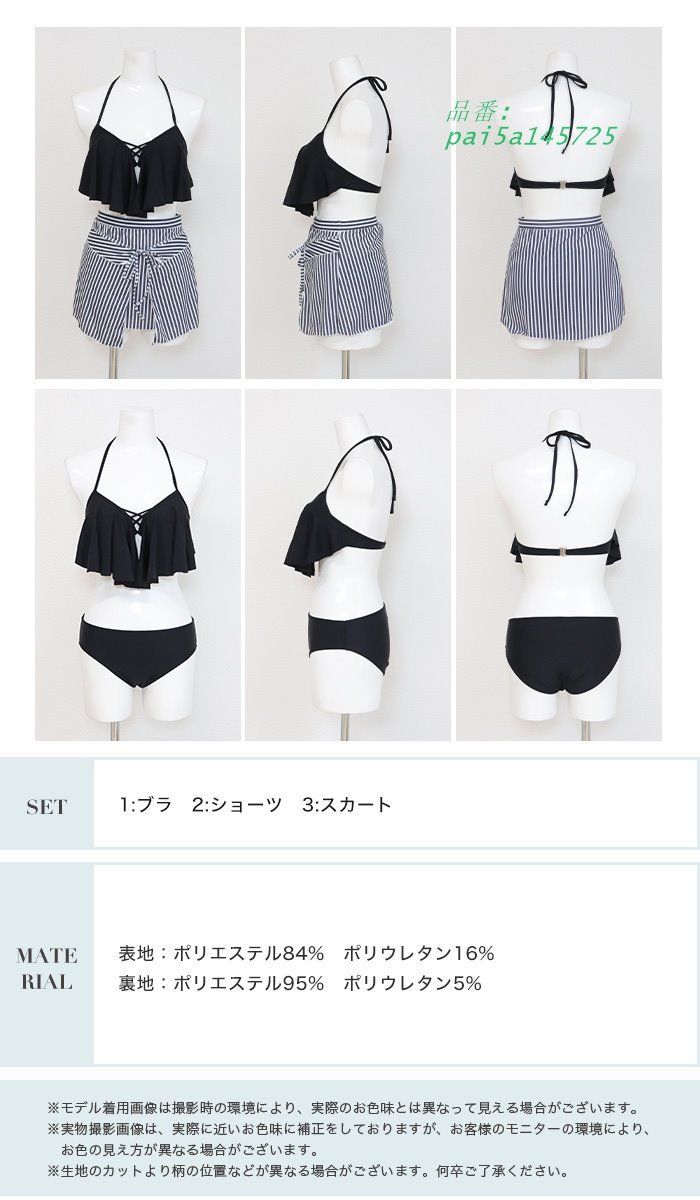 水着レディース ビキニ 3点セット セパレート ワイヤー入り 30代 20代 ビキニ 体型カバー 盛れる ストライプ柄 オトナ女子 おしゃれ スカート付き pai5a145725 GLOBALQUALITYIMPORTS_COM