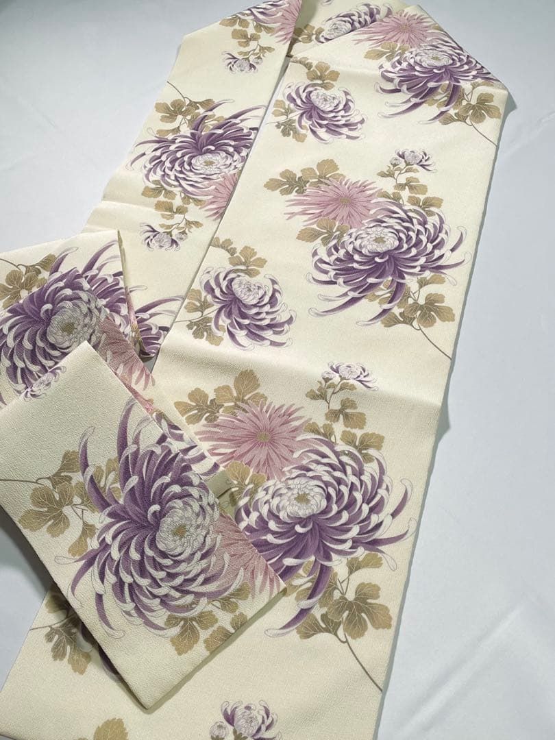 染帯 九寸名古屋帯 鬼しぼちりめん 菊 正絹 全通 GLOBALQUALITYIMPORTS_COM