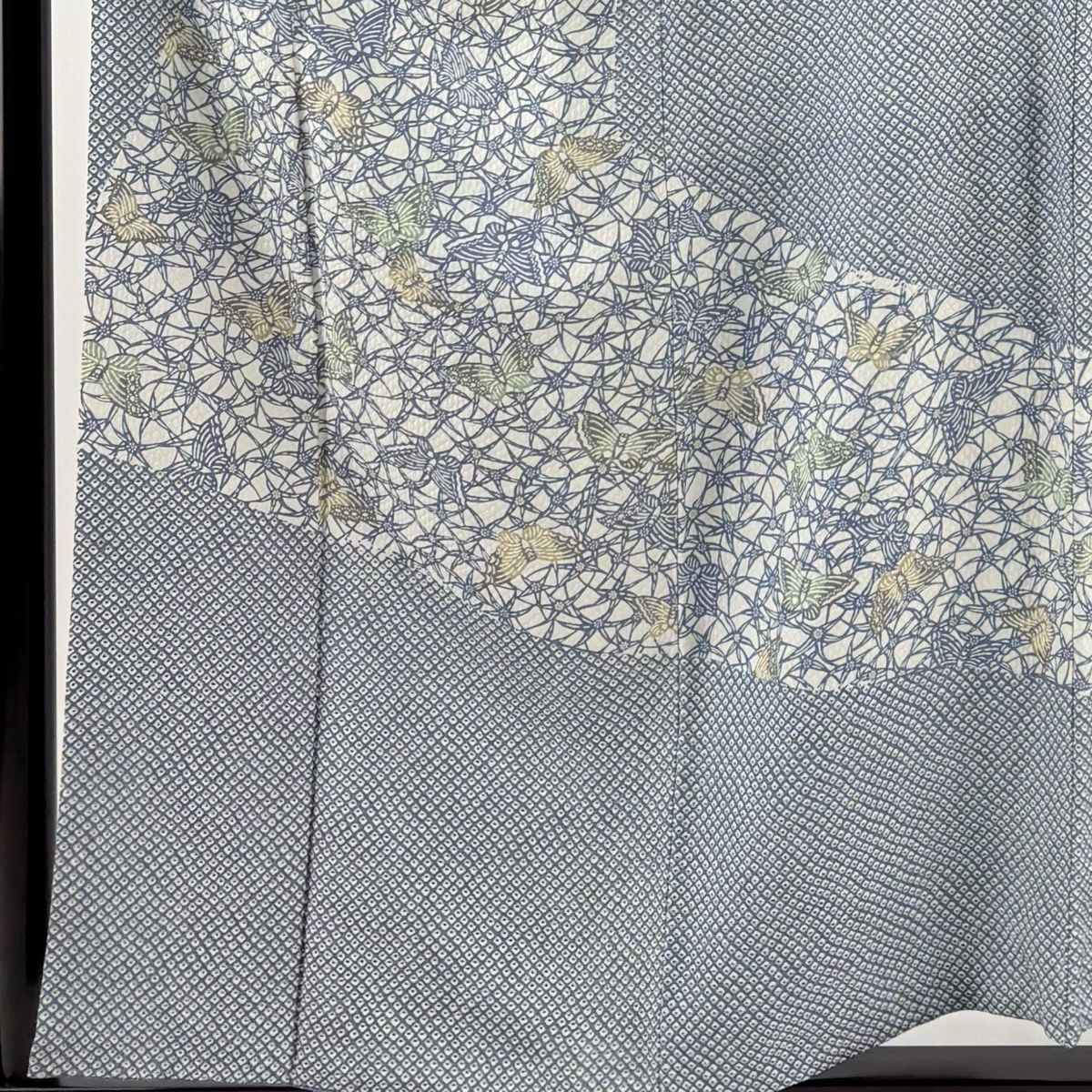 訪問着 身丈158cm 裄丈65cm M 袷 落款 蝶 花 青灰色 正絹 秀品の検索結果