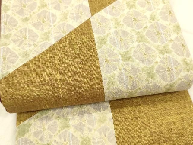 平和屋着物 上 京都の老舗呉服メーカー ODASHO 小田章 半幅帯 雪輪花文 金糸 利休茶色地 CZAA3471s5