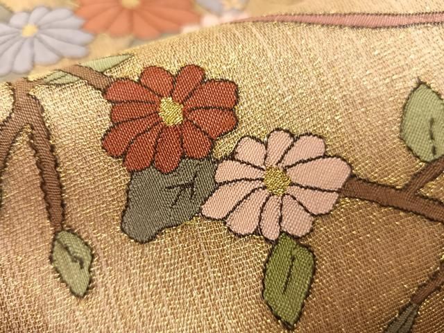 平和屋着物 夏物 六通柄袋帯 流水菊文 銀糸 正絹 CAAW7016fb