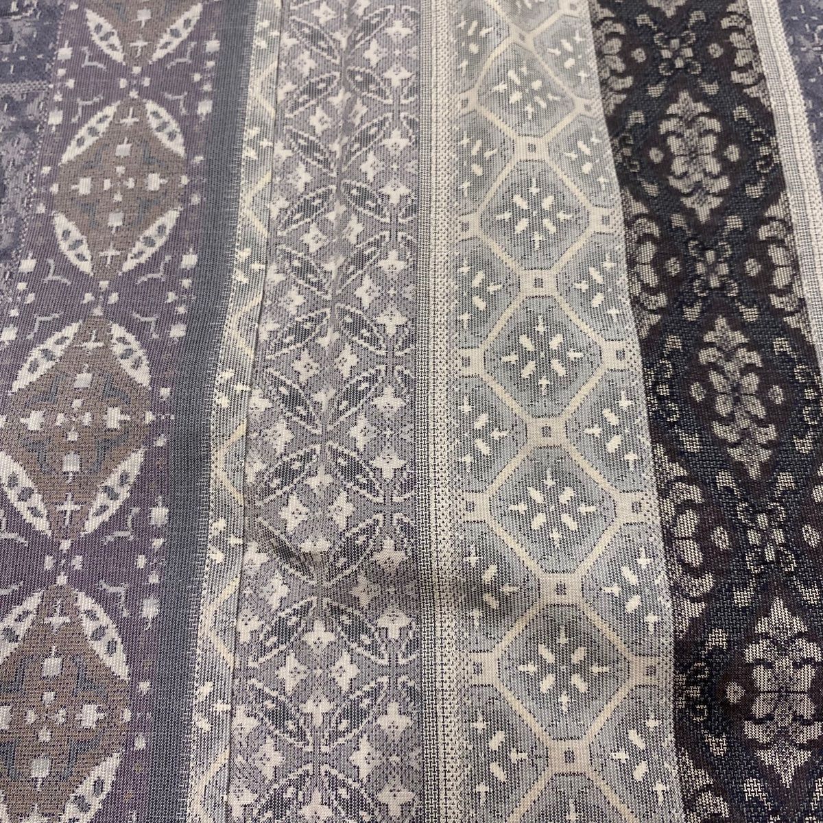 紬 身丈165cm 裄丈66cm M 袷 縞 華文 灰紫 正絹 GLOBALQUALITYIMPORTS_COM