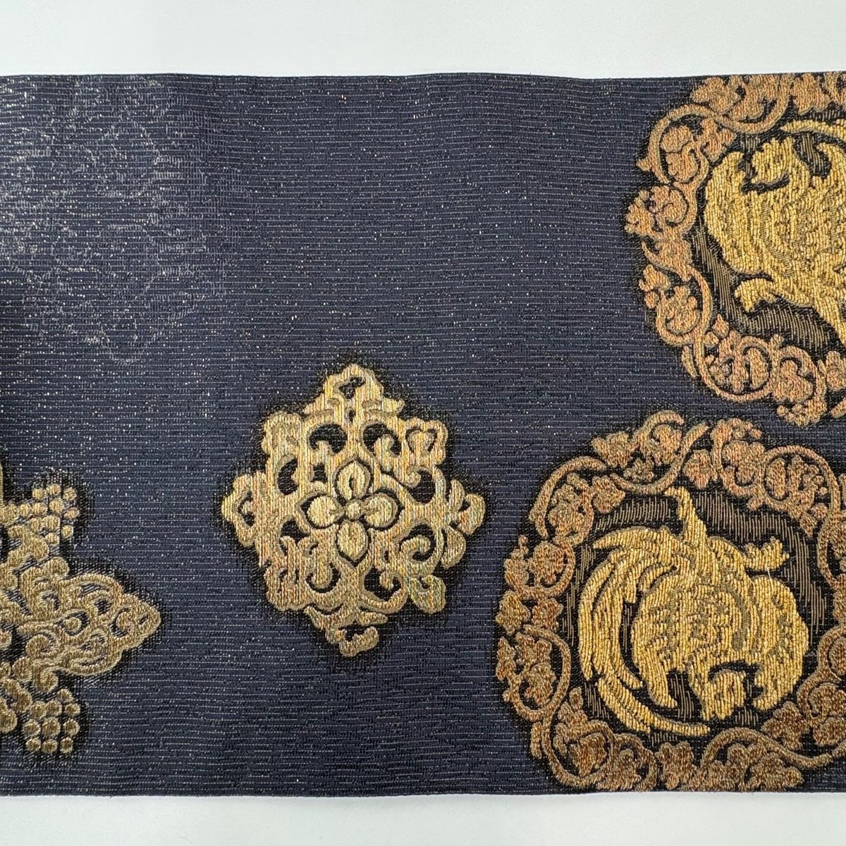 袋帯 秀品 鳳凰 華文 金糸 箔 紺色 お太鼓柄 正絹 GLOBALQUALITYIMPORTS_COM