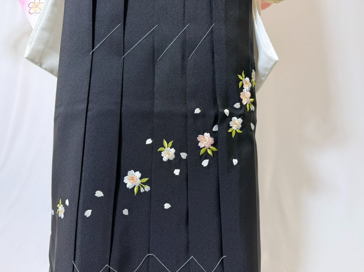 着物 袴 帯 3点セット 卒業袴 着物 袴 帯 二尺袖 仕立て上がり 3点セット 白 ピンク 黒 桜 刺繍 95-10 GLOBALQUALITYIMPORTS_COM