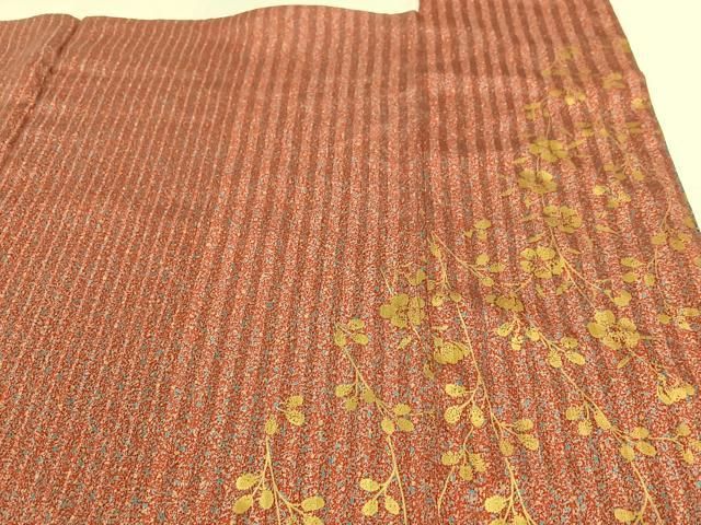 平和屋着物 世界的ファッションデザイナー 山本寛斎 kansaiブランド 振袖 色無地 草花地紋 紅海老茶色 正絹 AABB8201ph