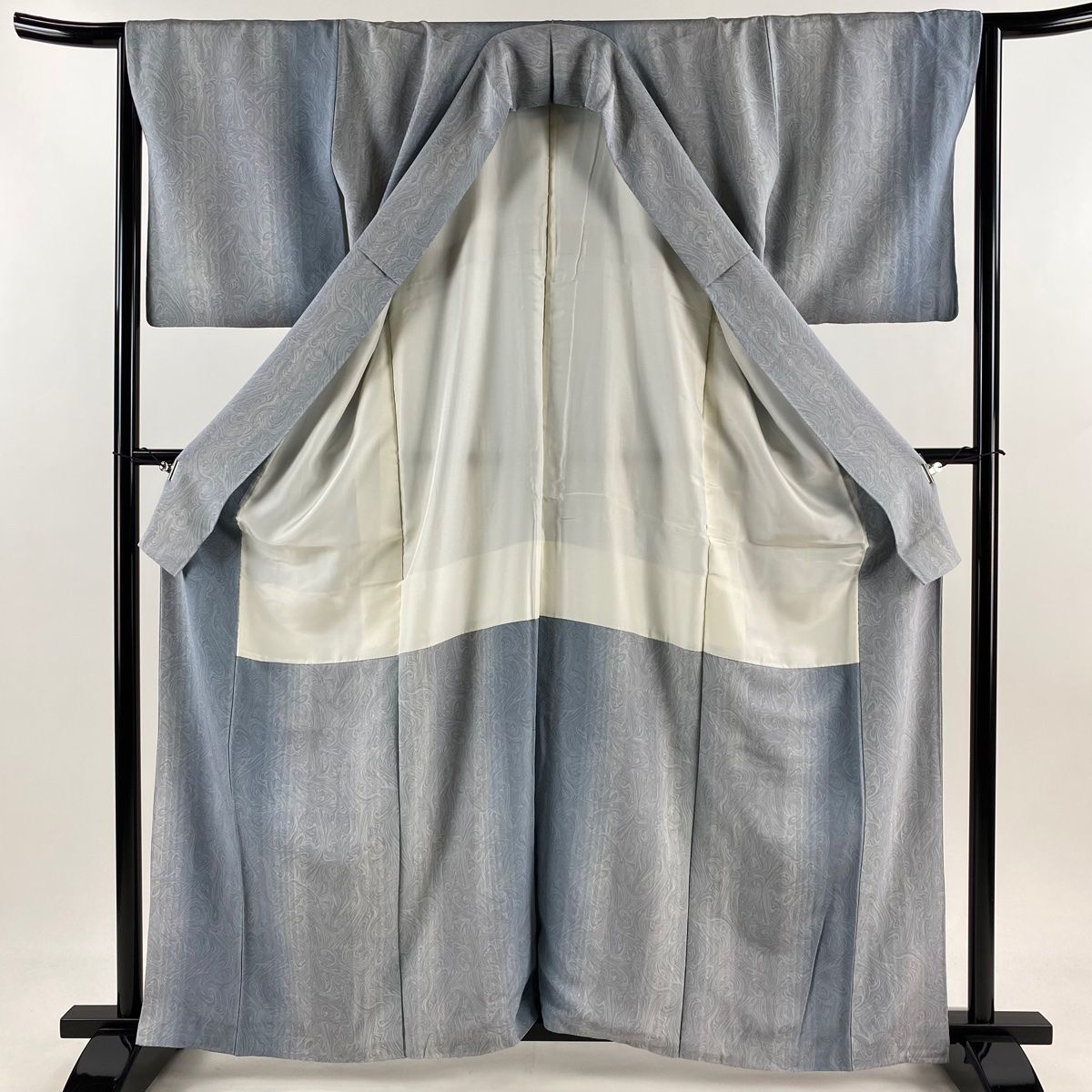 小紋 身丈161cm 裄丈64.5cm M 袷 墨流し 縦縞 青灰色 正絹 秀品の検索結果