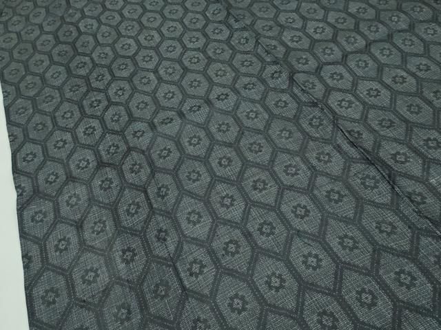 紬 身丈167.5cm 裄丈67cm M 袷 幾何学模様 墨色 正絹 秀品