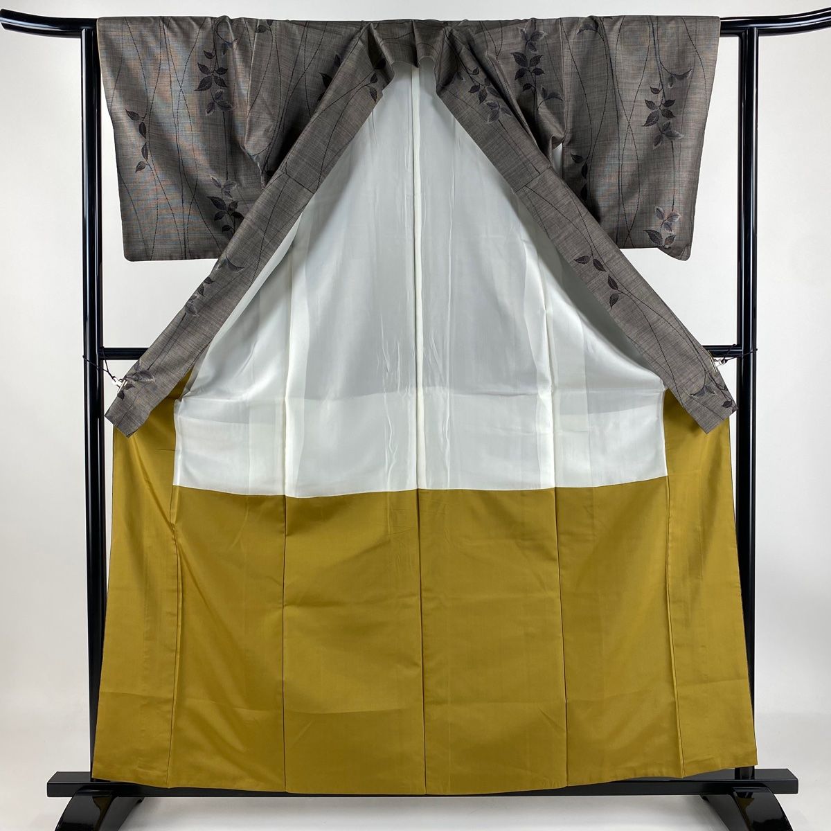 紬 身丈161cm 裄丈62cm S 袷 葉柄 灰茶 正絹 秀品の検索結果